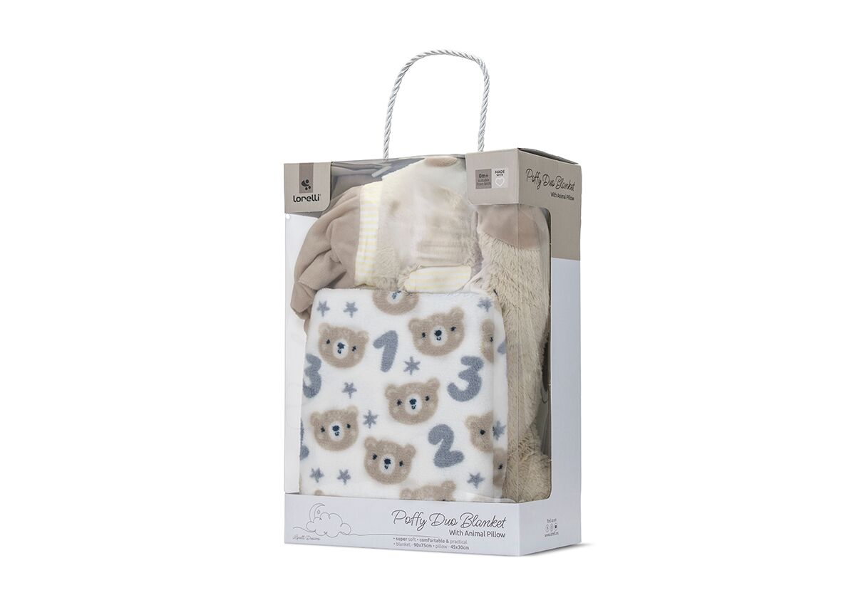 POFFY DUO κουβερτα 90х75см, με μαξιλαρακι ζωακι 45х30см Beige bear